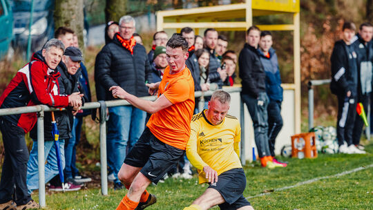 Die Spieler der SG Hambuch/Kaifenheim/Brohl (orange Trikots) und ihre Anhänger müssen auch in der kommenden Saison in den Hunsrück reisen zur SG Sargenroth/Unzenberg/Mengerschied (60 Kilometer einfache Wegstrecke) – plus neun weitere Male. Dazu gibt es drei Duelle gegen Mosel-Klubs in der B Staffel 11 – und kein einziges Derby gegen einen Eifel-Rivalen wie Auderath, Lutzerath, Vordereifel II, Ulmen oder Eifelhöhe Weiler-Gevenich. Alles, was die Spielklassenreform mit dem kreisübergreifenden Spielbetrieb (mehr Derbys, weniger Fahrtstrecke) versprochen hat, wurde bei Hambuch nicht eingehalten. Keiner der 216 B-Klässler im Verbands Rheinland muss so weit fahren nächste Saison wie die Hambucher. „Das Problem ist, dass es in der B-Klasse 14er- oder 15er-Staffeln gibt. Ziehe ich Hambuch in eine andere Staffel, haben andere Vereine Nachteile. Und wir können keine 13er- oder 16er-Staffeln machen, weil dann die Auf- und Abstiegsregelung nicht mehr einheitlich ist“, erklärt Spielleiter Karl Scheid. Foto: Photo-Moments by Dennis Irmiter Dennis Irmiter