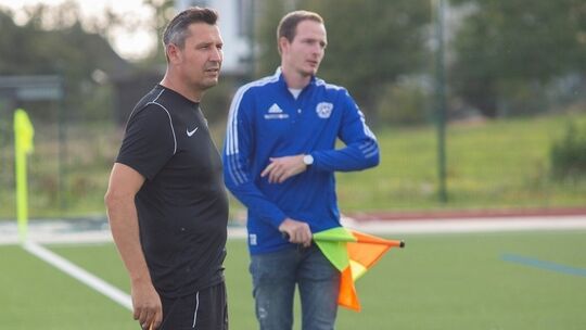 Vom Linienrichter zum Spielgestalter: Keven Zimmermann (links), Trainer der SG Morshausen, kann am heutigen Samstag im Heimspiel in Gondershausen gegen die SG Ober Kostenz/Kappel wieder auf sein zuletzt verletztes Mittelfeld-Ass Tim Rohbeck bauen. Foto: Sascha Berkele Sascha Berkele@GreenValleyMedia. Sascha Berkele