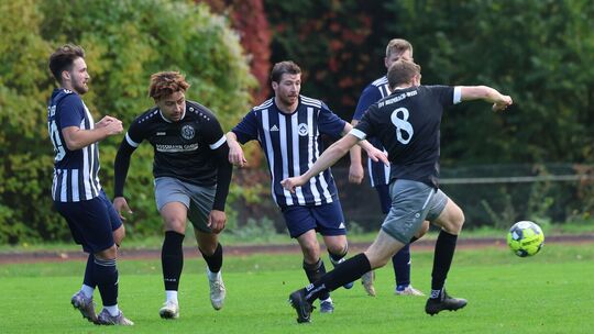 Der VfL Wied Niederbieber (in Blau-Weiß) konnte sich mit 2:1 gegen den SSV Heimbach-Weis durchsetzen (in Schwarz). Jörg Niebergall