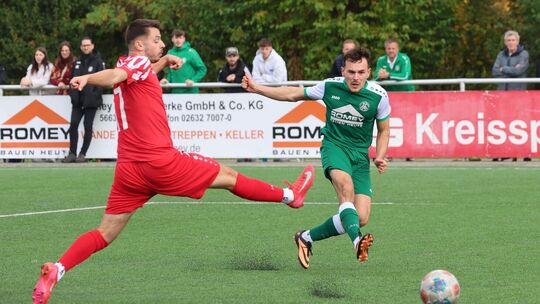Calvin Schäfer schießt hier den FC Plaidt gegen die SG Maifeld-Elztal