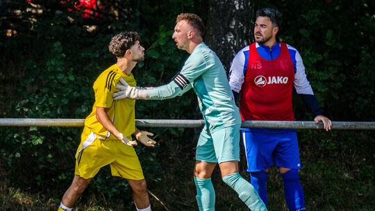 Im Derby wird es mal hitziger, so wie hier am ersten Spieltag in Kappel zwischen Ahmad Taha (links) vom TuS Kirchberg II und Torwart Robin Hammen von der SG Ober Kostenz/Unzenberg (rechts Nicolas Schöll). Kirchberg II gewann damals mit 2:0, nun kommt es zum Rückrundenstart am Sonntag (14.30 Uhr) zum Rückspiel - allerdings ohne Taha, er fehlt nach seiner Ampelkarte gegen Weiler (1:1) gesperrt. Dennis Irmiter