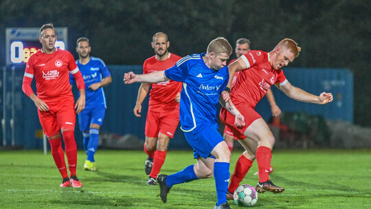 Der SSV Buchholz (in Blau, vorne Christian Schneider) hat das Nachholspiel gegen Untermosel II mit 3:5 verloren. Mark Dieler