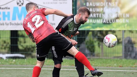 Wiedergutmachung: Nach der 0:4-Niederlage beim SV Melsbach (links Jan Bastian Kosche), hofft die SG Eintracht Mendig II (rechts Simon Schmitz) auf Zählbares im Derby gegen den TuS Mayen II. Foto: Jörg Niebergall Jörg Niebergall