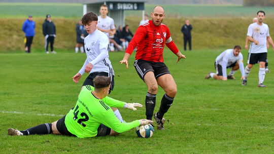 Ohne Torwart Fabian Berg, er hier Jannick Jakobs, dem Kapitän des SV Blankenrath II rettet, muss die SG Bell/Buch/Mörsdorf/Alterkülz ins letzte und wohl auch schwerste Spiel des Jahres gehen. Der Tabellendritte gastiert am Sonntag (14.30 Uhr) beim makellosen Spitzenreiter SV Gonzerath- B&P Schmitt
