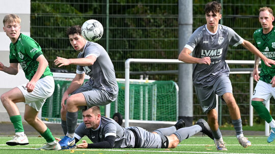Die SG Honigsessen (in Grau) will Friesenhagen im Verfolger-Duell nicht vorbei ziehen lassen. Betzdorfs Reserve (in Grün) will im Derby gegen Alsdorf als Sieger vom Feld gehen. Manfred Böhmer/balu