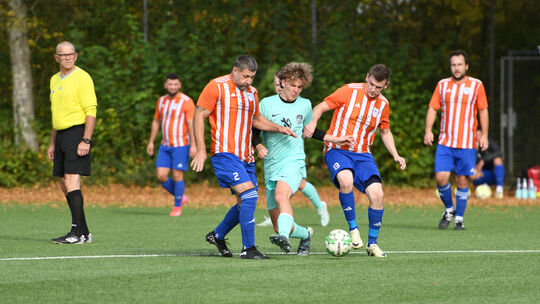 Die beiden Nassauer Vitalii Hipot (links) und Yannick Ludwig (rechts) kümmern sich hier um SG-Youngster Mika Petrikowski, der spät ins Schwarze traf und am Ende dennoch mit seinem jungen Team leer ausging. Andreas Hergenhahn