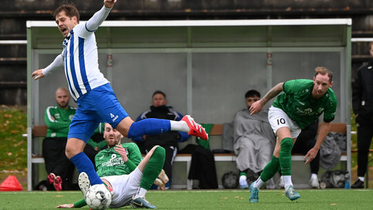 Vergangene Woche nahmen sich die DJK Friesenhagen (vorne Patrick Kroll) und die SG 06 Betzdorf II (grüne Trikots) im Verfolgerduell gegenseitig die Punkte ab. Dieses Wochenende wollen sich beide gemeinsam dem Spitzenreiter SG Herdorf (empfängt Betzdorf II) annähern. Manfred Böhmer/balu