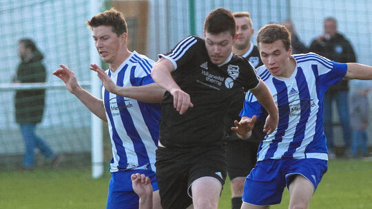 Drei Demerather abgeschüttelt, Derby gewonnen und den zweiten Sieg in dieser Saison gefeiert: Die SG Auderath/Alflen mit dem zweifachen Torschützen Henrik Schneider (in Schwarz) hat sich im Lokalduell durchgesetzt und mit 4:0 gewonnen. Die SG gab dadurch die Rote Laterne in der B Staffel 8 an Neunkirchen II ab. Foto: Alfons Benz Alfons Benz