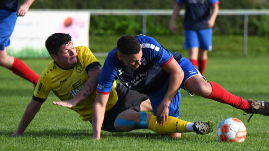 Die SG Bitzen (in Blau) hatte gegen Spitzenteam VfL Oberlahr-Flammersfeld (gelbes Trikot) erwartungsgemäß keine Chance und rutschte auch aufgrund die 0:6-Pleite ans Tabellenende. Foto: balu balu