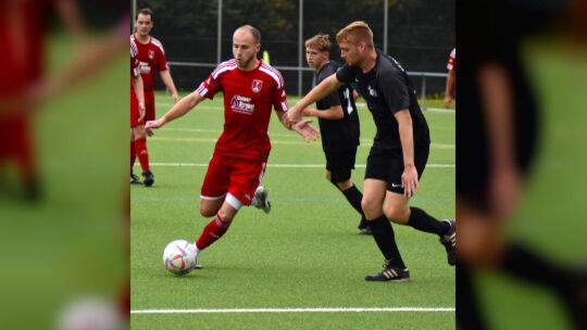 Hahnstätten. Die SG Aar-Einrich Allendorf-Berghausen/Hahnstätten hat auch im Heimspiel gegen die SG Bogel/Reitzenhain/Bornich II nichts anbrennen lassen. Im achten Saisonspiel der Fußball-Kreisliga B7 gab's gegen BoReiBo einen ungefährdeten und in der Höhe verdienten 5:0-Erfolg. Die Torfolge: 1:0 Jan Schuldheis (20.), 2:0 Tim Krist (48.), 3:0 Philipp Holl (63.), 4:0 Jerome Petak (77.), 5:0 Jerome Petak (84.). Das Foto zeigt den in der 51. Minute eingewechselten Jerome Petak (am Ball), hier im Zweikampf an der Strafraumgrenze mit Bogels Abwehrspieler Sören Balzer (schwarzes Trikot).