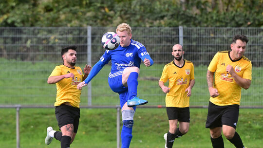 Die SG Westum/Löhndorf II (am Ball mit Christian Morgenschweis-Schäfer) geht als Favorit ins Heimspiel gegen Schlusslicht Neuwied. Der SC Sinzig (gelbe Trikots) gastiert bei der Reserve der SG Landskrone Heimersheim. Martin Gausmann. Ahr-Foto Martin Gausmann
