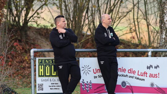 Fünf Tage nach dem 1:0-Sieg im Spitzenspiel gegen den TuS Kirchberg III musste das Trainerteam des TuS Ellern, Jan Wächter (links) und Carsten Vollrath, eine unglückliche 4:5-Niederlage bei der SG Sohren II verkraften. Ellern geht nun mit drei Punkten Rückstand auf Kirchberg III in die Winterpause. Christian Kiefer