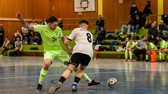 Im Januar waren es noch acht Mannschaften, die bei der HKM in Emmelshausen an den Start gingen, wie hier im Halbfinalduell FC Karbach II (in Grün) gegen SG Eifelhöhe. Die Kombinierten aus Büchel, Faid, Weiler und Gevenich sind am Samstag ab 17 Uhr in Kirchberg wieder dabei, wenn es um die HKM-Krone geht. Diesmal ist das Teilnehmerfeld mit sechs Teams noch überschaubarer. Mark Dieler