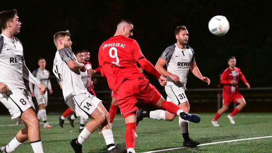 Auf die Kopfballstärke von Almir Porca (in Rot) setzt der Ahrweiler BC auch wieder im Heimspiel gegen den FC Metternich. Foto: Vollrath Martin Gausmann. Vollrath