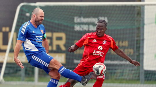 Im Hinspiel siegte Kirchberg mit 3:2 gegen Trier-Tarforst. Florian Daum (blaues Trikot) trug sich zweimal in die Torschützenliste ein und könnte am Samstag nach Verletzung zurückkehren. Auf Ammar Cisse Zakari wird er dann nicht wie im Hinspiel treffen. Zakari wechselte im Winter zu A-Klässler SG Niederburg. B&P Schmitt