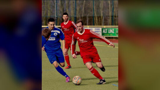 Seit der Saison 2015/16 spielt Yannik Becker (rotes Trikot) beim VfB Linz. Dieses Foto stammt aus seiner ersten Saison, damals ging's, noch eine Klasse tiefer, auch schon gegen den VfB Wissen. Heinz-Werner Lamberz