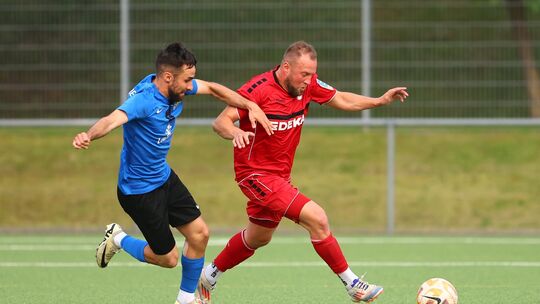 Der größte Erfolg für Kevin Schenk (rotes Trikot) war der Aufstieg mit seinem FV Rübenach in die Rheinlandliga. Gegen Eintracht Trier II gab es in der Relegation zwar eine Niederlage, dennoch ging der FV, gemeinsam mit der Eintracht-Reserve, am Ende hoch. René Weiss