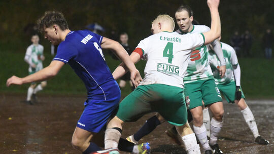 Luca Kirschbaum, der hier mit Ball am Mülheimer Christoph Fritsch vorbeizieht, markierte nach einer gespielten Stunde den 2:0-Endstand im Heimspiel seines VfB Wissen gegen den Oberliga-Absteiger vom Rhein. Foto: balu balu