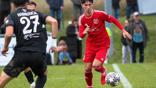 Der junge Norbert Loch (in Rot) wird Laubach im Winter verlassen, seine Eltern ziehen zurück nach Polen und der 18-Jährige damit auch. Loch kam auf starke 16 Einsätze in 19 Spielen. Alfons Benz