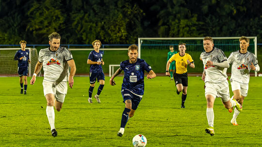 Das fünfte und letzte Tor für Mülheim-Kärlich durch Joker Hendrik Hillen (Mitte) zum 5:2 der Gastgeber war nicht das letzte der Partie, Mendig verkürzte noch auf 3:5 in einer wilden Partie am Freitagabend. Heinz-Joerg Wurzbacher