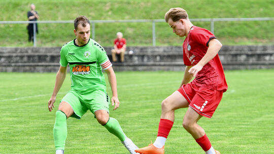 Am ersten Spieltag der laufenden Saison herrschten klare Verhältnisse zwischen Eisbachtal (rechts Jonah Arnolds) und Niederroßbach (links Lukas Blech). Doch in der jüngeren Pokalhistorie landete das Team aus dem Hohen Westerwald auch schon einen Coup gegen die Sportfreunde. Foto: Andreas Hergenhahn Andreas Hergenhahn