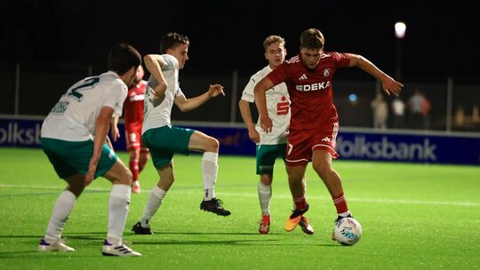Youngster Jayden Juranovic (in Rot) und seine Rübenacher wollen nun in einem "echten" Heimspiel punkten, es geht zu Hause gegen den SV Laubach. René Weiss