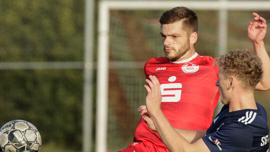 Immendorf. Nach hartem Kampf im Spiel der Fußball-Rheinlandliga musste sich Aufsteiger TuS Immendorf (in Rot mit Marvin Weber im Zweikampf um den Ball) mit einem 2:2 (0:1)-Unentschieden gegen die SG Hochwald begnügen. „Wir hätten natürlich gerne gewonnen, weil es ein Heimspiel war. Aber nach dem Spielverlauf bin ich auch mit der Punkteteilung zufrieden“, sagte Immendorfs Trainer Sascha Oestreich.