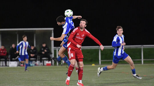 Es war ein Duell auf Augen- oder auch Kopfballhöhe, das sich die EGC Wirges, hier mit Ronaldo Kröber (blaues Trikot), und die FV Morbach mit Matthias Haubst, lieferten. Am Ende stand ein 1:1, mit dem beide Seiten gut leben konnten. Andreas Hergenhahn