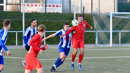 Hinter dem Einsatz von Marian Kneuper (blau-weißes Trikot, am Ball) steht fürs kommende Wochenende ein großes Fragezeichen. Der Routinier der EGC Wirges hatte sich in der Vorwoche im Spiel gegen Bitburg eine Oberschenkelverletzung zugezogen. Andreas Hergenhahn