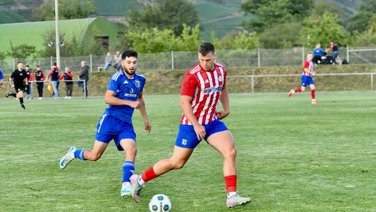 Auf Mühlbachtals Torjäger Johannes Bräutigam (am Ball, gegen Yannis Lamberti von der Osterspaier Reserve) wartet am Sonntag mit seinem Team im Kreispokal A/B bei Titelverteidiger BoReiBo eine äußerst hohe Hürde. Andreas Hergenhahn