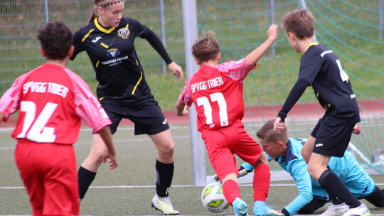 JSG Trier-Süd – JFV Rhein-Hunsrück 4:0 (2:0). Vor der Partie hatte beide Kontrahenten sieben Punkten, nun nur noch der JFV, der Drittletzter der Neunerstaffel ist. Die ersten Fünf erreichen die Meisterrunde, der Rückstand auf Trier-Tarforst und nun Trier-Süd beträgt drei Punkte.