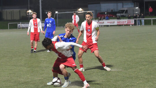 Voller Kampf um drei Punkte: Diesen wollen die Eisbachtaler A-Junioren (in Rot-Weiß) und die Wirgeser (in Blau) auch am Wochenende liefern. Andreas Hergenhahn