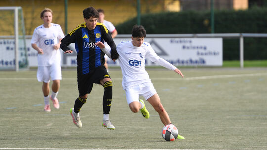 Arion Neziri (in Weiß) und seine Spvgg EGC Wirges erkämpften sich einen Punkt im Heimspiel der B-Jugend-Regionalliga gegen den 1. FC Saarbrücken II (in Blau-Schwarz). Andreas Hergenhahn