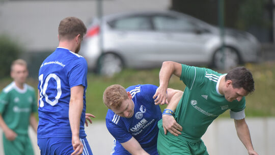 Einen schweren Stand hatte der TuS Fortuna Kottenheim (in Grün) bei der SG Westum/Löhndorf (in Blau), die den Gästen mit dem 2:1 die erste Niederlage in dieser Saison beibrachte. Foto: Vollrath Vollrath
