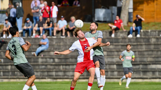 Wer zu spät ins Stadion kam, verpasste die frühe Führung der Eisbachtaler durch Jonah Arnolds (in Rot-Weiß) und eventuell auch den Ausgleich der Gäste aus Ludwigshafen, denn die beiden Tore des Tages fielen nach drei und sechs Minuten beim 1:1. Andreas Hergenhahn