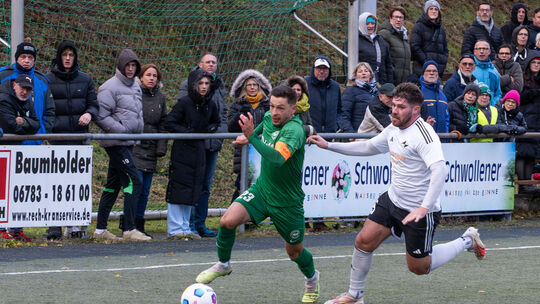 Kann Robin Sooß, der Kapitän des VfR Baumholder, auch am Samstag seinem Gegenspieler davonsprinten? Der VfR gastiert bei der zweiten Mannschaft des 1. FC Kaiserslautern im Sportpark Rote Teufel am Fröhnerhof. Foto: Benny Werle Benny Werle