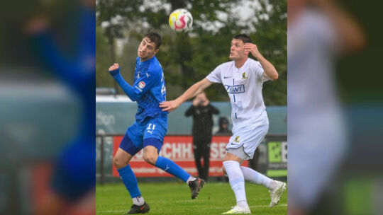Jakob Schink (links) kränkelte nach dem 1:6 am Dienstag gegen Eintracht Trier, ein Einsatz des Verteidigers des FC Karbach wäre aber am Samstag (15 Uhr) wichtig, denn im Heimspiel gegen den SV Gonsenheim fällt schon Kapitän und Abwehr-Ass Jannik Mohr aus. Mohr sah gegen Trier die Gelb-Rote Karte. Foto: Mark Dieler Mark Dieler
