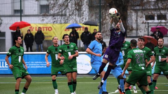 Beim jüngsten 4:1-Heimsieg gegen den FC Cosmos Koblenz stand die Engerser Abwehr um Torwart Stefan Djordjevic sehr sicher. Foto: Jörg Niebergall Jörg Niebergall