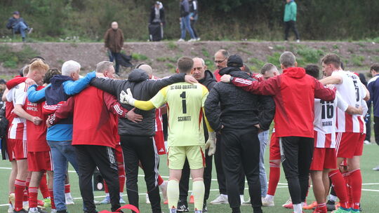 Marco Reich mitten im Kreis der Mannschaft. Beim SC Idar-Oberstein hört jetzt alles auf das Kommando des früheren Profis. In Karbach trägt er zum ersten Mal die Cheftrainer-Verantwortung. Hähn Joachim. Joachim Hähn