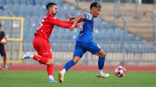 Dieses Lauf-Duell läuft immer noch: Die Oberliga-Partie zwischen Cosmos Koblenz mit Nao Oriyama (in Blau) und Rot-Weiss Koblenz Giulio Multari vom 19. August hatte bekanntlich durch das Nutzen eines vierten Wechselfensters der "Cosmonauten" ein juristisches Nachspiel. Das neigt sich nun dem Ende zu, zumindest ist klar, dass die Spielwertung bestehen bleibt. René Weiss