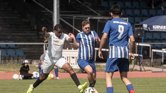 Gegen Bavaria Ebernburg (blaue Hosen) siegte die Eintracht-Reserve