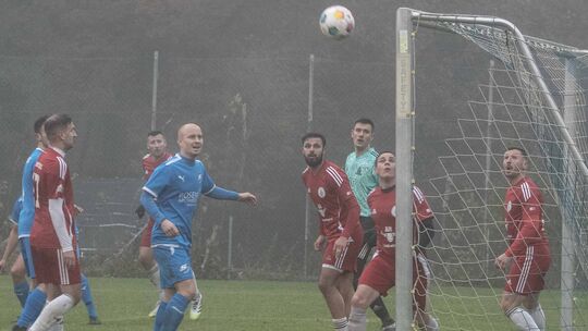 Geht er rein oder nicht? Eine von vielen packenden Torraumszenen im Spitzenspiel zwischen der SG Soonwald (blaue Trikots) und dem VfL Simmertal. Ottenbreit Michael. MO-Fotos.de