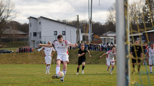 Der entscheidende Treffe für den SV Weiersbach im Derby. Nico Ackermann verwandelt einen Elfmeter zum 1:0-Sieg gegen den TuS Hoppstädten II. Stefan Ding