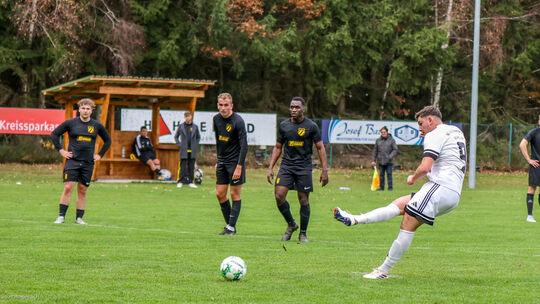 Auch mit Strafstößen erzielt die SG Niederhambach/Schwollen ihre Tore. Hier netzt Darius Oancea für den Spitzenreiter ein. Stefan Ding