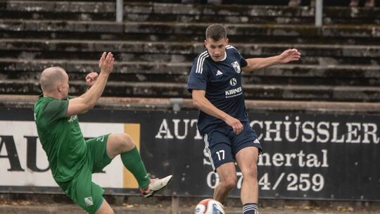 Auf dem Sprung: Der Planiger Akteur wirft sich in die Flanke von Julian Röhrig. Der Kirner verlor mit seinem Team das Spitzenspiel. Ottenbreit Michael. MO-Fotos.de