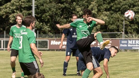 Der SV Oberhausen (grüne Trikots) kämpft um den Klassenverbleib in der Bezirksliga. André Müller bleibt in jedem Fall Trainer der Oberhausener. Ottenbreit Michael. MO-Fotos.de