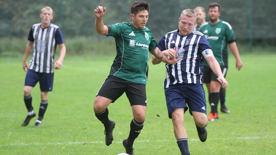 Die Spvgg Fischbach II (gesteifte Trikots) hat dem TuS Kirschweiler den bisher einzigen Punktverlust eingebracht. Am Sonntag können die Kirschweilerer mit einem Sieg im Gipfeltreffen trotzdem auf Rang eins springen. Hähn Joachim. Joachim Hähn