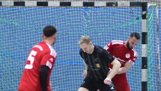 Viele Torraumszenen und Tricks mit dem sprungreduzierten Ball machen Futsal aus. Vor einem Jahr siegte der TuS Winzenheim (rote Trikots) im Finale gegen die SG Weinsheim. Beide Teams sind wieder dabei. Castor Klaus neu. Klaus Castor