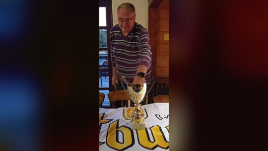 Hettenrodts Torwart-Altmeister Hans-Joachim Hahn beim Auslosen des Viertelfinals. Foto: Rolland Axel Rolland