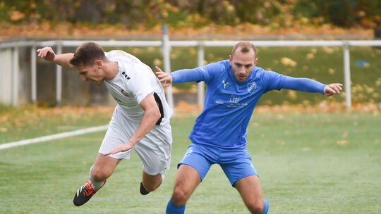 Im freien Fall: Oliver Gäns und der TuS Hackenheim (weiße Trikots) bekommen derzeit in der Landesliga keinen Fuß auf den Boden, unterlagen der SG Rieschweiler zu Hause mit 1:4. Klaus Castor